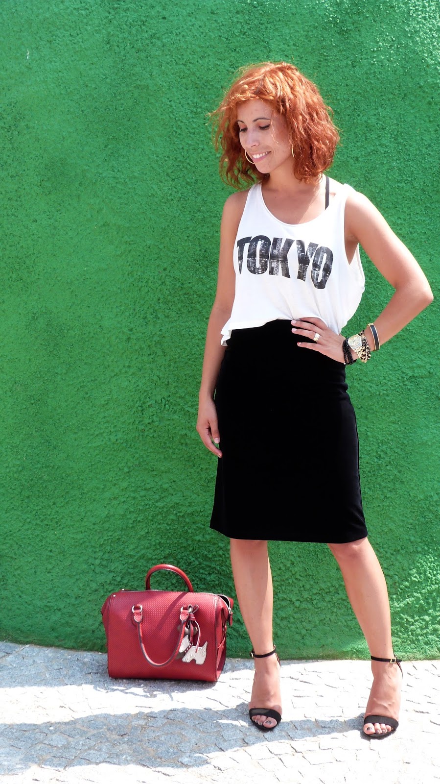Outfit: skirt:saia (Mango OLD), t-shirt (Zara new), sandals:sandálias (Zara)